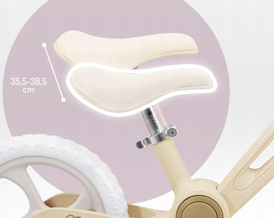 Poganjalec ima možnost hitre spremembe višine sedeža brez uporabe orodja. Zahvaljujoč temu je prilagoditev vozila otrokovi višini izjemno preprosta in hitra, kar se odraža v udobju vsakodnevne uporabe in dolgotrajne uporabe kolesa.