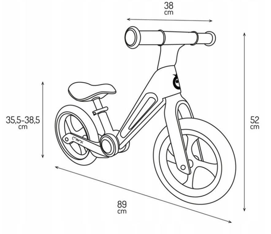 Okvir kolesa je izdelan iz najlona, zaradi česar je lahek in primeren za otroke od 2. leta starosti. V okvirju je tudi praktična luknja, ki omogoča priročno prenašanje kolesa – idealna rešitev med sprehodi ali ko se vaš otrok odloči za trenutek počitka.