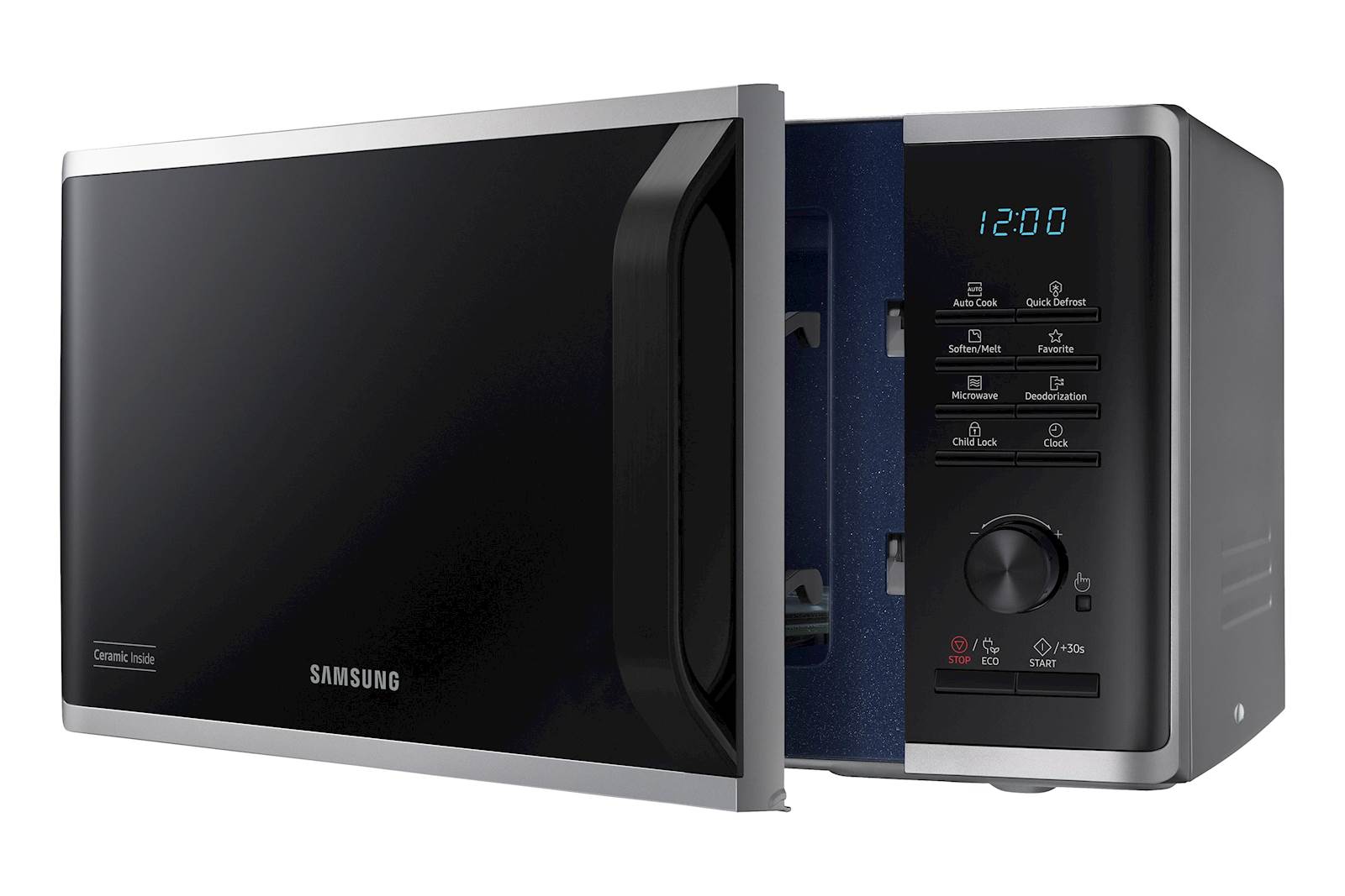 Mikrovalovna pečica Samsung MS23K3515AS/E2 je sodobna mikrovalovna pečica, ki združuje eleganten videz in praktične funkcije za hitro pripravo obrokov. S keramično notranjostjo, ki se enostavno čisti, funkcijo hitrega odmrzovanja ter prednastavljenimi programi omogoča udobno in učinkovito uporabo v vsakem gospodinjstvu. ECO način poskrbi za manjšo porabo energije, LED zaslon pa za enostavno upravljanje.