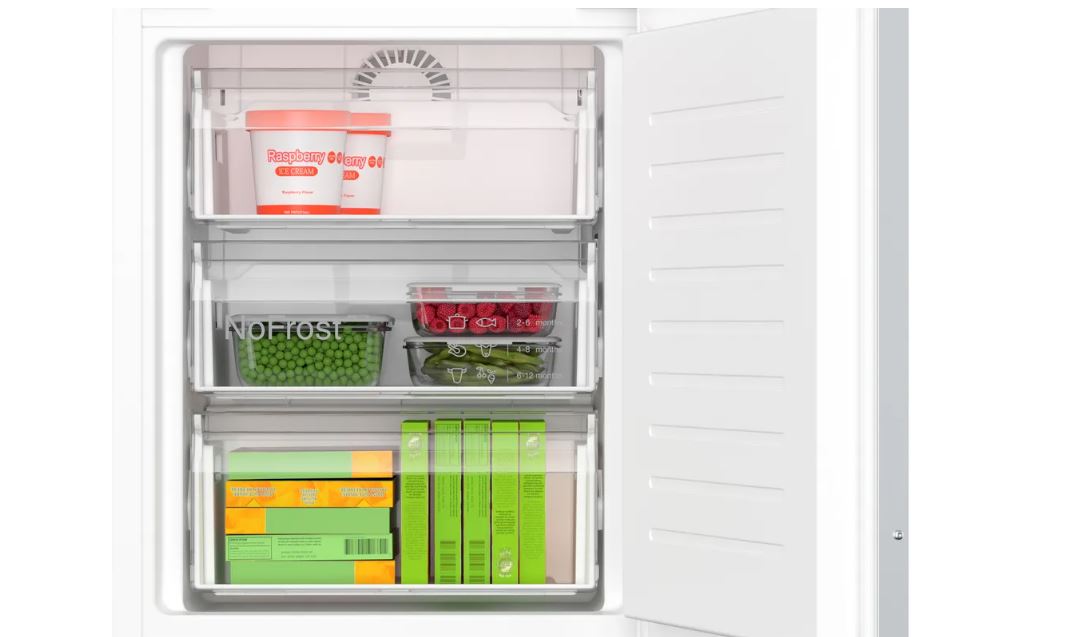 Feature IconRočno odmrzovanje hladilnika je lahko zelo nadležno in zamudno. Z našimi novimi hladilniki s sistemom No Frost lahko na to opravilo za vedno pozabite. Za razliko od običajnih hladilnikov se vlaga v hladilniku No Frost stalno zbira v osrednji hladilni enoti, ki se v rednih časovnih razmikih samodejno odmrzne. Kondenzat, ki pri tem nastane, je preprosto speljan iz hladilnika, kjer nato izhlapi. No Frost na ta način za vedno opravi z ledom v vašem hladilniku, vi pa lahko pozabite na odmrzovanje.