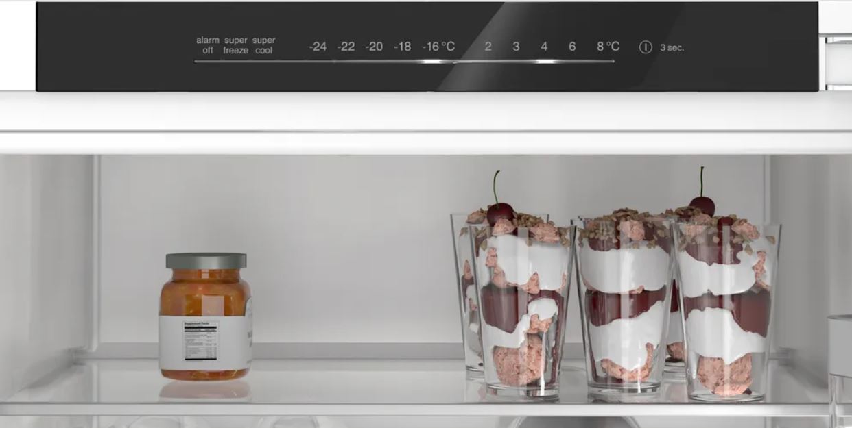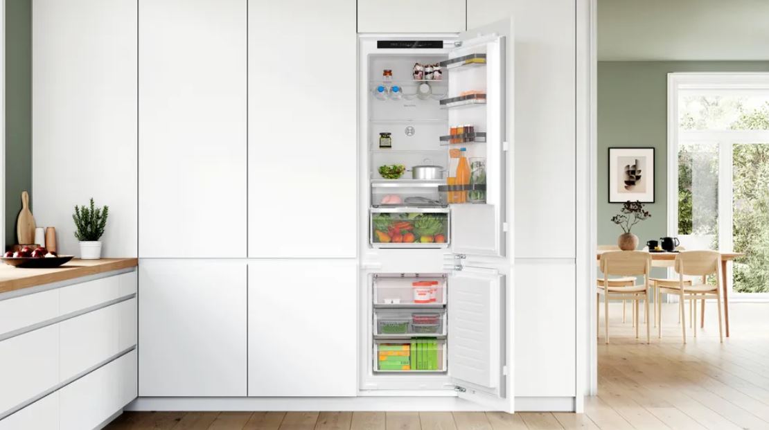 Vgradni hladilnik s tehnologijo No Frost, LED osvetlitvijo in Super Cooling funkcijo.
