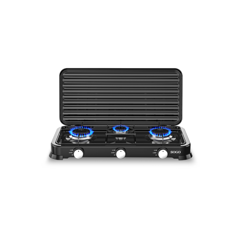Plinski štedilnik s tremi gorilniki, zasnovan za uporabo na prostem. Ima gumb za vklop/izklop in nadzor plamena, ki olajša prižiganje gorilnikov in vam omogoča prilagajanje jakosti plamena glede na vaše kuharske potrebe. Lahko ga uporabljate z butanom pri 28-30 mbar ali propanom pri 37 mbar.