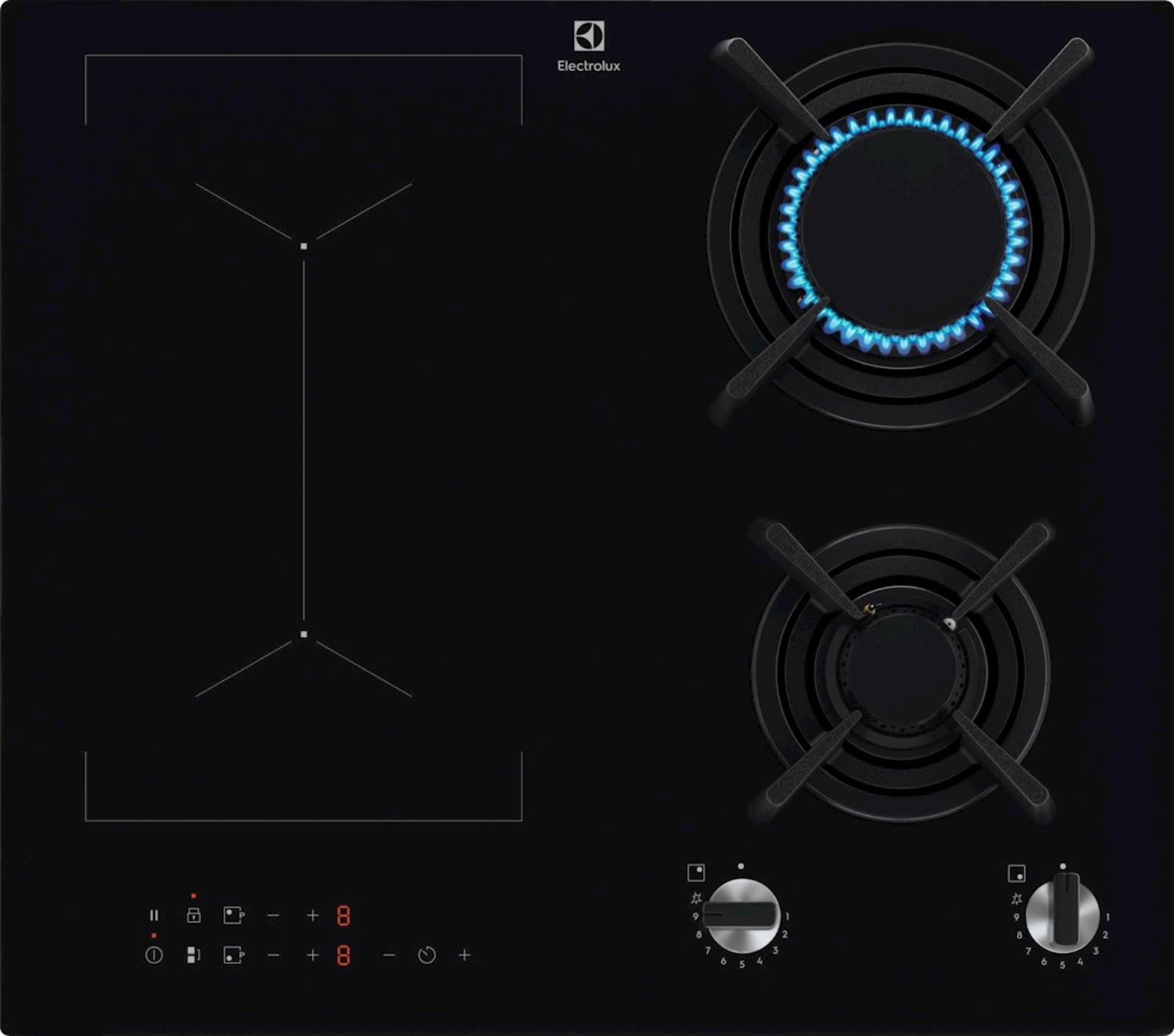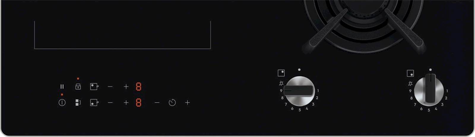 Kombinacija plinskih gorilnikov in električnega kuhališča vam omogoča, da prilagodite grelni vir vašim jedem. Funkcija Bridge omogoča združitev dveh ločenih kuhališč v eno veliko površino. S samodejno prilagoditvijo temperature in časa je popolna, da kar najbolje izkoristite žar plošče ali posode za pečenje.