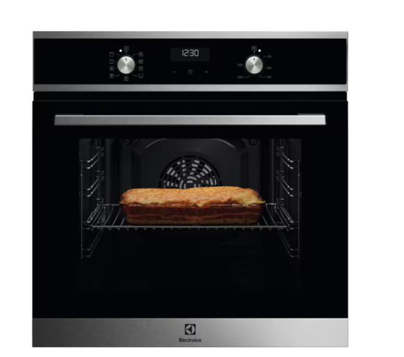 Naša pečica poskrbi, da je notranja temperatura vseskozi enakomerna, ker ventilator omogoča kroženje zraka in toplote. Tako vam ni treba več obračati jedi ali nastavljati položaja pekača. Uživajte v enakomernem pečenju. Dodatni grelec za ventilatorjem omogoča pečenje na dveh nivojih. Idealno za pečenje čokoladnih piškotov in pit.