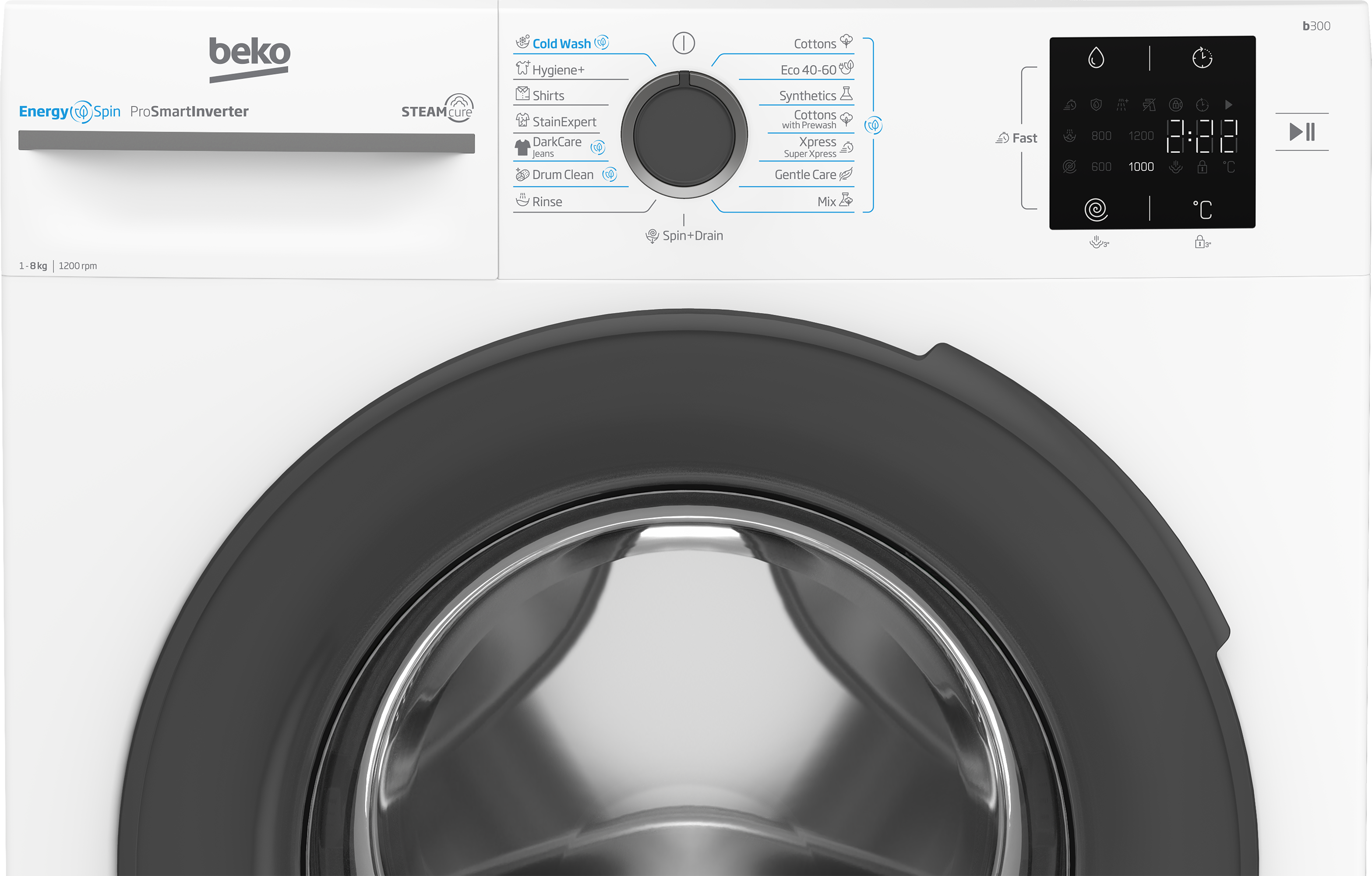 Tehnologija EnergySpin z dinamičnimi premiki bobna izboljšuje raztapljanje detergenta in prihrani do 35 % energije – ne le pri programu Eco. To je dokaz Bekojeve zavezanosti trajnosti brez kompromisov pri čistoči.