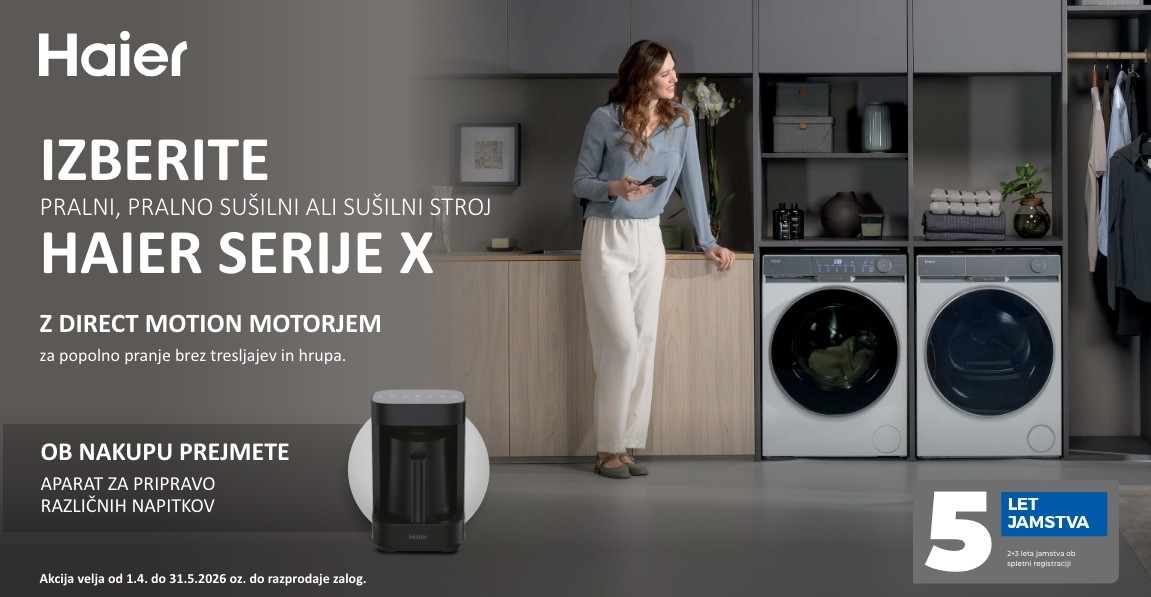 Izberite pralni, pralno - sušilni ali sušilni stroj HAIER serije X in prejmite darilo: aparat za pripravo napitkov.