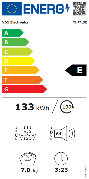 Začnite uživati v boljšem sušenju perila z VOX THP 715 E sušilnim strojem z toplotno črpalko. Za dodatno mirnost pa poskrbimo s 5-letno garancijo. Sušenje perila še nikoli ni bilo tako enostavno!
