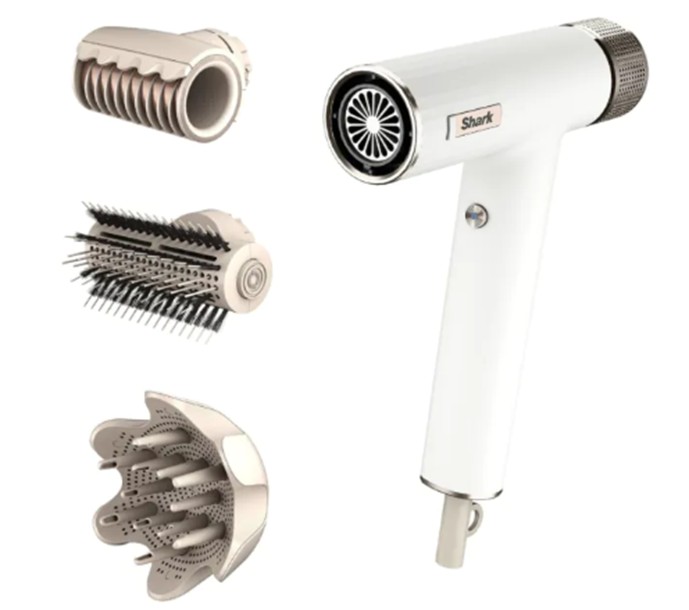 SHARK Sušilnik las HD334EU je zmogljiv in lahek sušilnik, ki omogoča hitro sušenje in oblikovanje las ter vključuje več nastavkov za prilagodljivo uporabo.