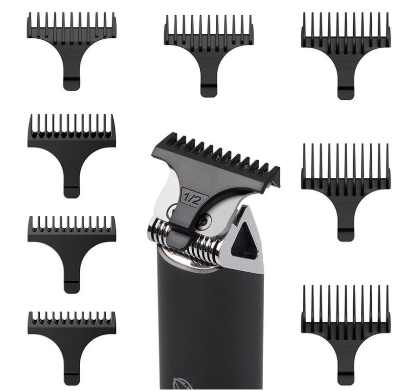 Prirezovalnik je opremljen z osmimi zamenljivimi nastavki, ki ponujajo širok razpon dolžin striženja: 0,5 mm, 1 mm, 1,5 mm, 2 mm, 3 mm, 5 mm, 7 mm in 9 mm. Ti nastavki vam omogočajo natančno prilagoditev dolžine striženja vašemu slogu, ne glede na to, ali imate raje zelo kratko ali nekoliko daljše prirezovanje. Vsak nastavek je zasnovan za enostavno sestavljanje in udobno uporabo, zaradi česar je prirezovalnik neverjetno vsestranski in idealen za vsakodnevno nego.