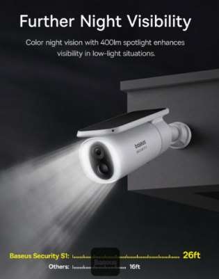 Baseus Security S1 je zasnovana tako, da čim manj obremenjuje baterijo in zagotavlja dolgo avtonomijo. Z vgrajeno 10 400 mAh litij-ionsko baterijo kamera ob normalni uporabi zdrži več tednov tudi brez neposredne sončne svetlobe.