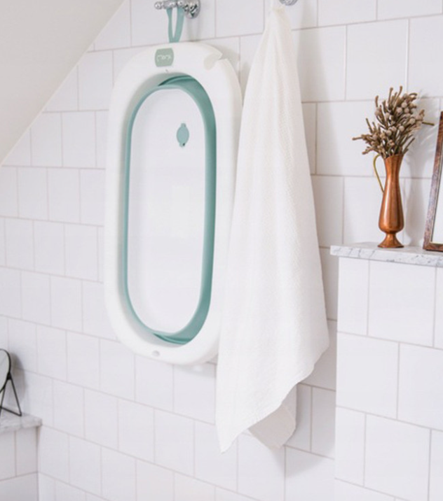 Kopalna kad MoMi NATA je hitro in enostavno zložljiva, zložena pa je visoka le 10 cm! Zavzame zelo malo prostora, zato ga je priročno shraniti tudi v majhni kopalnici. Dodatno ima ročaj, ki omogoča obešanje zložene kopalne kadi.