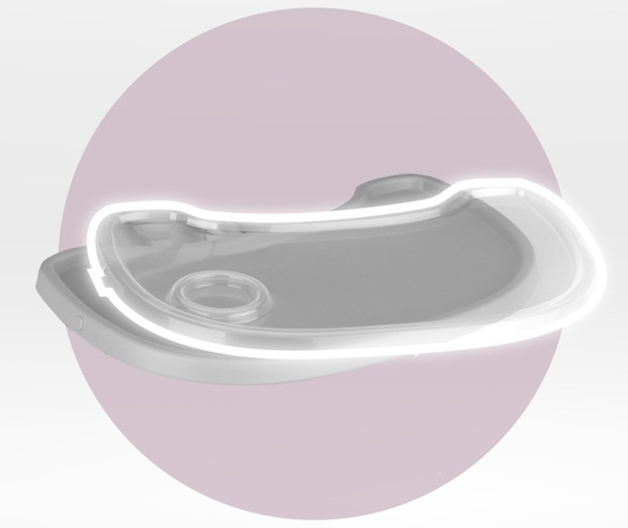Dvojni pladenj s prostorom za skodelico je praktična rešitev za starše. Zgornji pladenj je enostavno odstraniti in pomiti v pomivalnem stroju, kar omogoča enostavno vzdrževanje čistega in higieničnega med vsakodnevno uporabo.