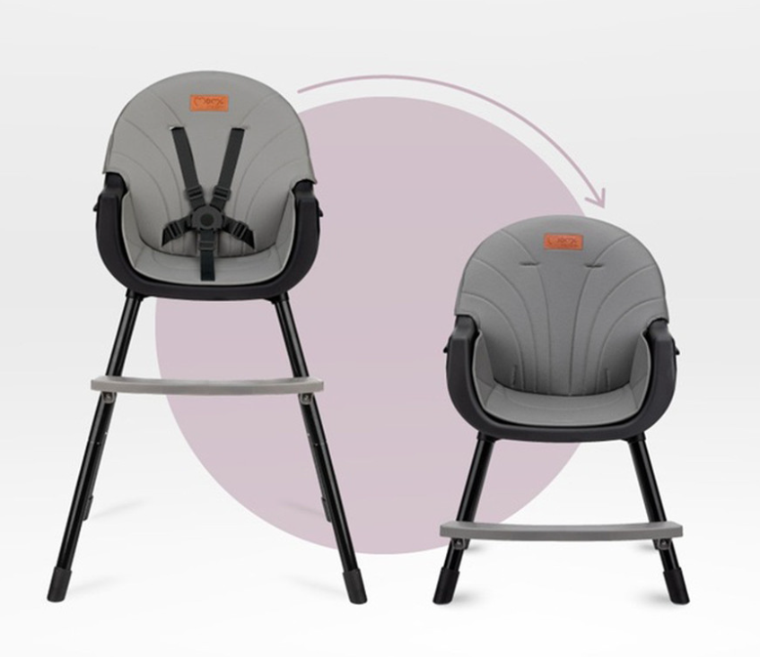 Sodoben, minimalističen dizajn je bil ustvarjen z mislijo na pravilno držo otrok. Oblikovano hrbtišče in udoben naslon za noge zagotavljata udobje in varnost med vsakodnevno uporabo – tudi pri intenzivni uporabi.
