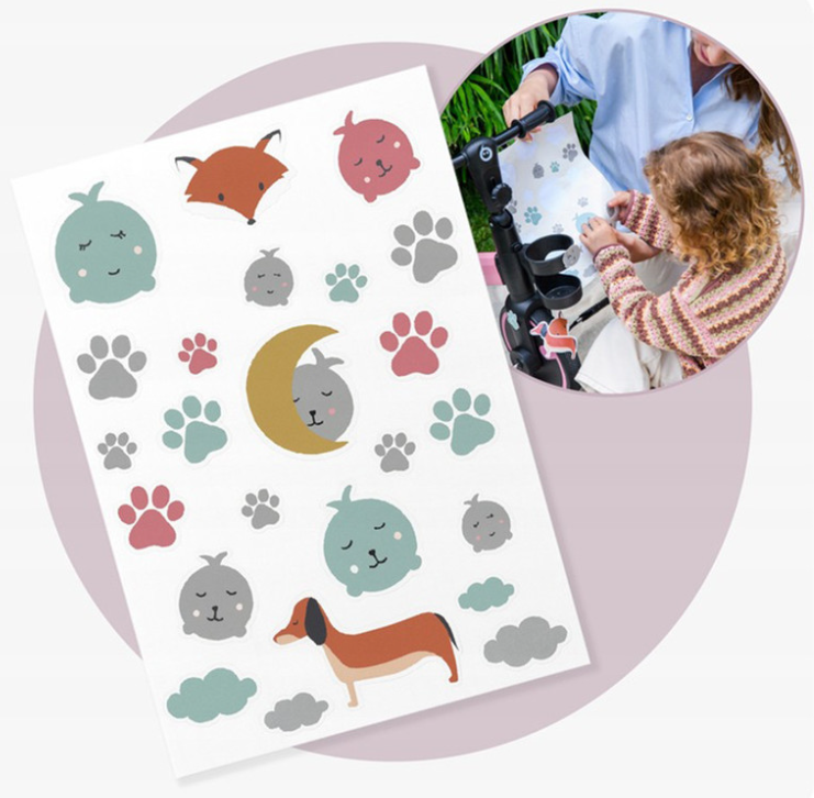 Vsak otrok si želi, da bi bilo njegovo kolo edinstveno. Zato komplet vključuje pisan komplet nalepk , s katerimi lahko vaš malček okrasi okvir in svojemu kolesu doda personaliziran pridih. Nalepke se odlično obnesejo tudi kot okraski za čelado – dodatna zabava in varnost v enem!