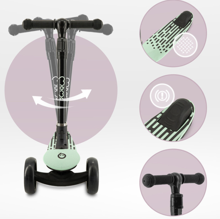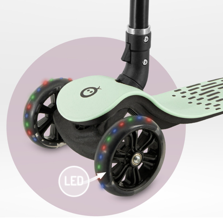 MoMi SAN je 3-kolesni skiro za ravnotežje, ki je idealen za učenje vožnje. Je stabilen in varen za otroke. Ima nedrsečo površino in ročaje . Najpomembnejša lastnost za otroke so kolesa z LED lučkami , za starše pa zložljiv ročaj olajša prevoz in shranjevanje.