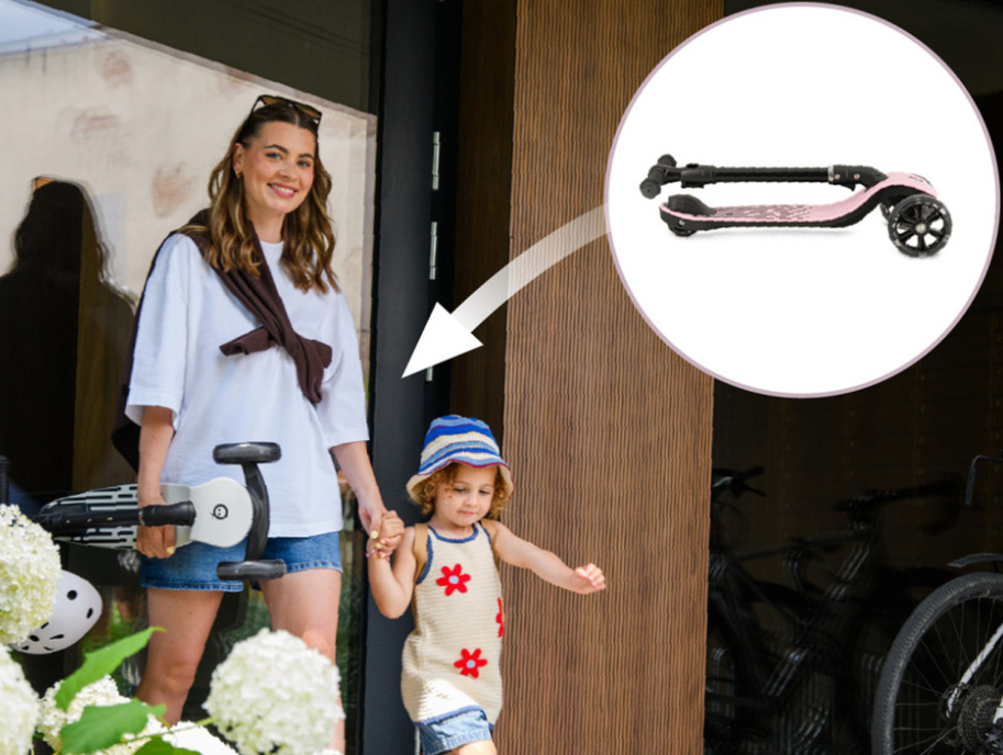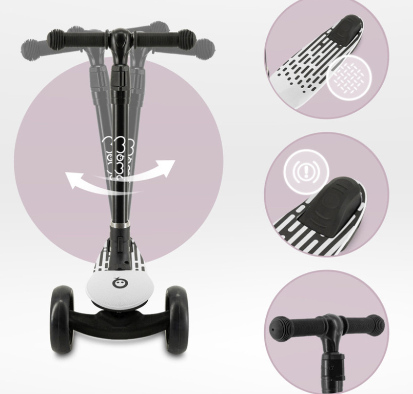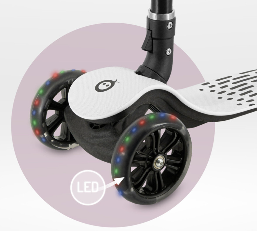 MoMi SAN je 3-kolesni skiro za ravnotežje, ki je idealen za učenje vožnje. Je stabilen in varen za otroke. Ima nedrsečo površino in ročaje . Najpomembnejša lastnost za otroke so kolesa z LED lučkami , za starše pa zložljiv ročaj olajša prevoz in shranjevanje.