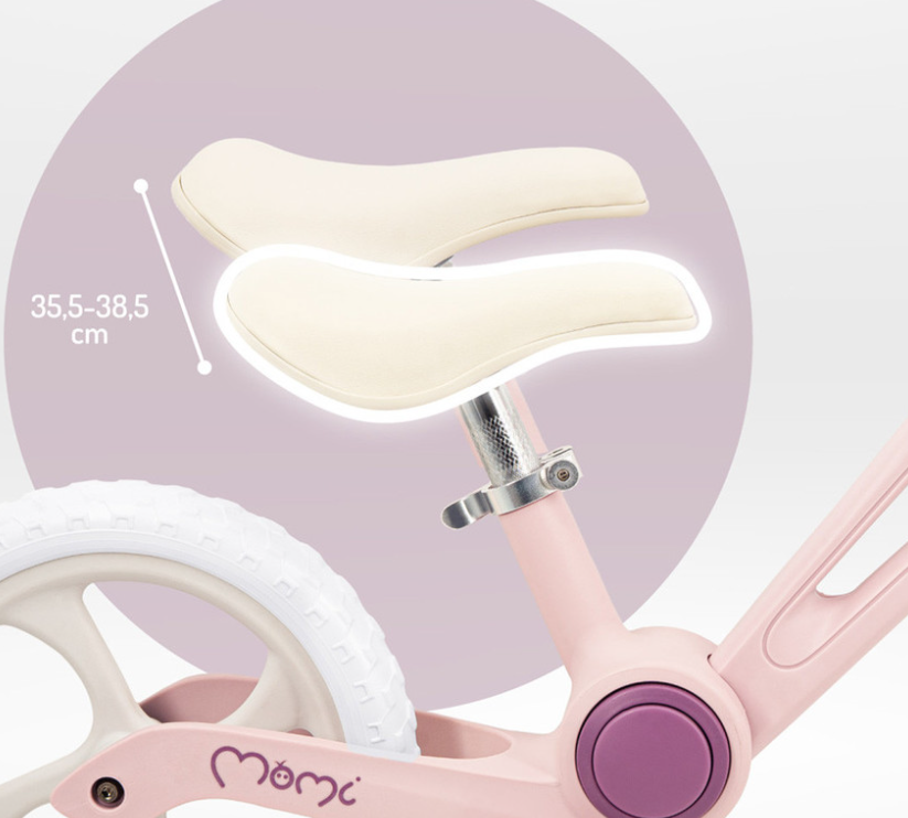 Poganjalec ima možnost hitre spremembe višine sedeža brez uporabe orodja. Zahvaljujoč temu je prilagoditev vozila otrokovi višini izjemno preprosta in hitra, kar se odraža v udobju vsakodnevne uporabe in dolgotrajne uporabe kolesa.
