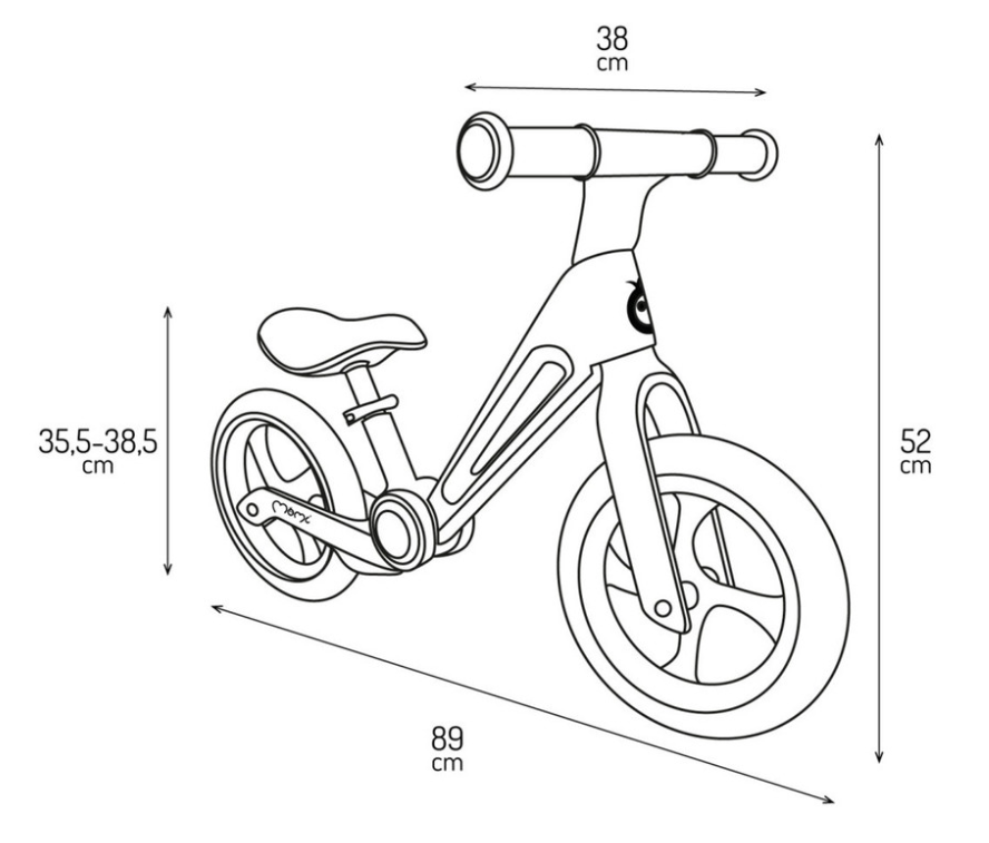 Okvir kolesa je izdelan iz najlona, zaradi česar je lahek in primeren za otroke od 2. leta starosti. V okvirju je tudi praktična luknja, ki omogoča priročno prenašanje kolesa – idealna rešitev med sprehodi ali ko se vaš otrok odloči za trenutek počitka.