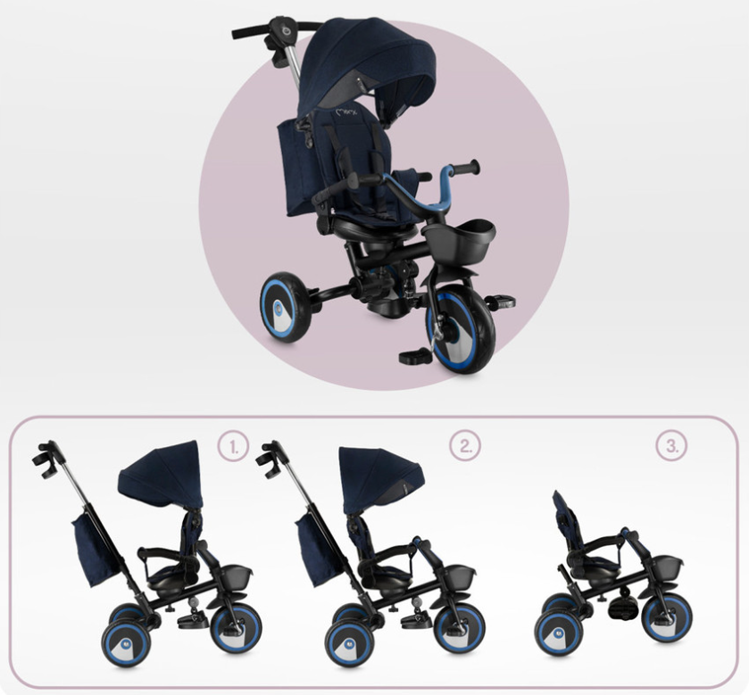 Otroški voziček/tricikel MoMi IVI 3v1 črno-moder