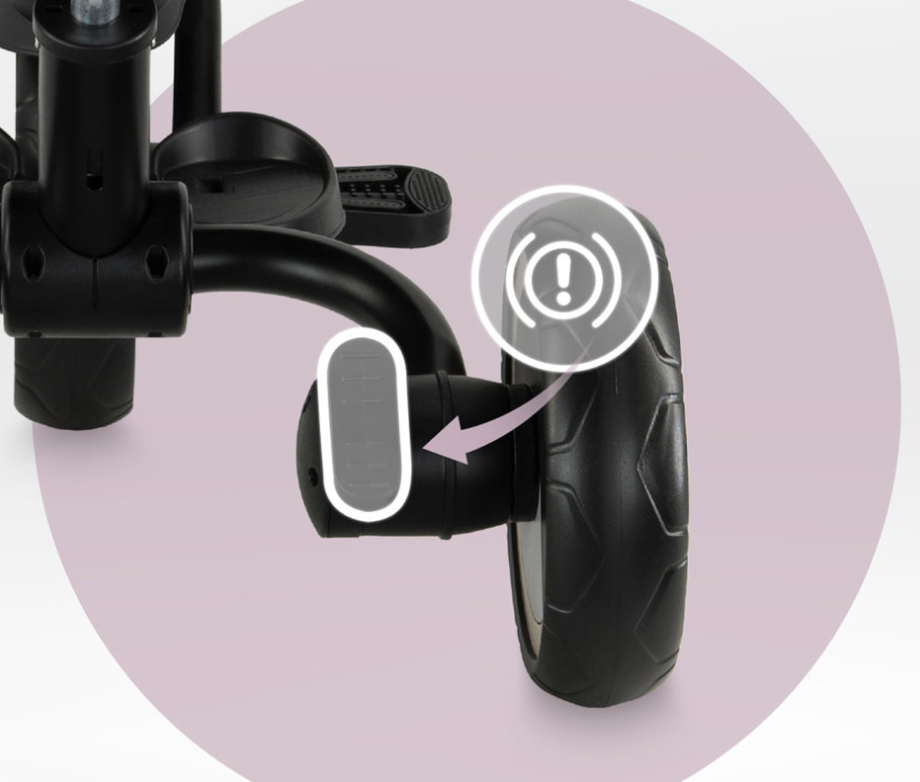 Tricikl MoMi IVI ima funkcijo prostega teka. To pomeni, da se kolo ne premika s pedaliranjem. Idealna rešitev, kadar starš uporablja ročaj, medtem ko otrokove noge počivajo na pedalih.