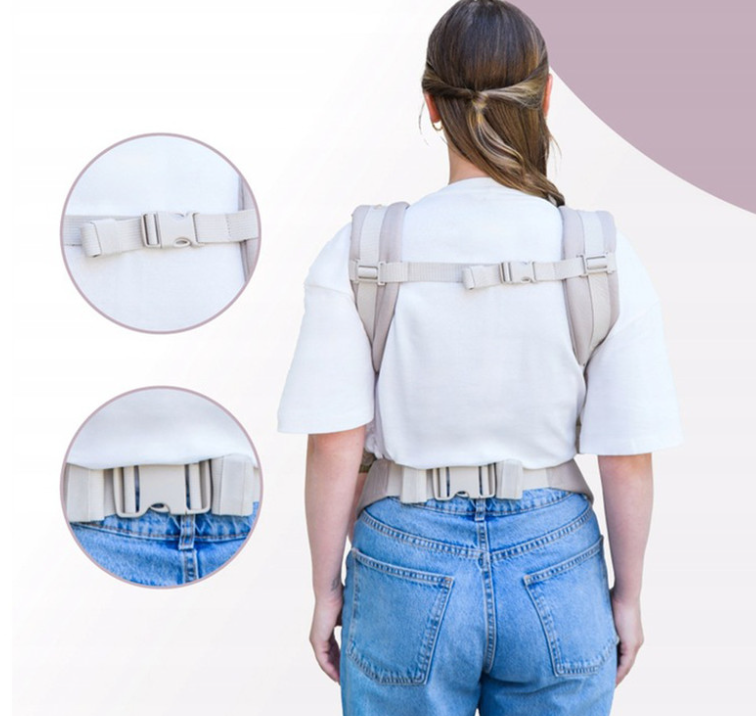 MoMi COLLET je zahvaljujoč širokim naramnicam na ramenih in širokemu pasu na bokih neverjetno udoben za starša. Zaponke ne povzročajo pretiranega pritiska, ker so prekrite z mehkimi blazinami.