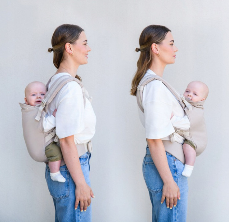 V MoMi COLLET lahko otroka nosite tako spredaj kot zadaj. Tako, da je dojenček na vašem hrbtu ali pa spredaj pri vaših prsih. Sprednji položaj je priporočljiv za dojenčka od 3. meseca življenja, zadnji pa od 6. meseca življenja.