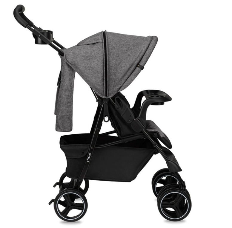 Kolesa vozička so vrtljiva in imajo blaženje udarcev. Poleg tega je voziček lahek in okreten. Zaradi vseh teh elementov je voziček zelo udoben za starše.