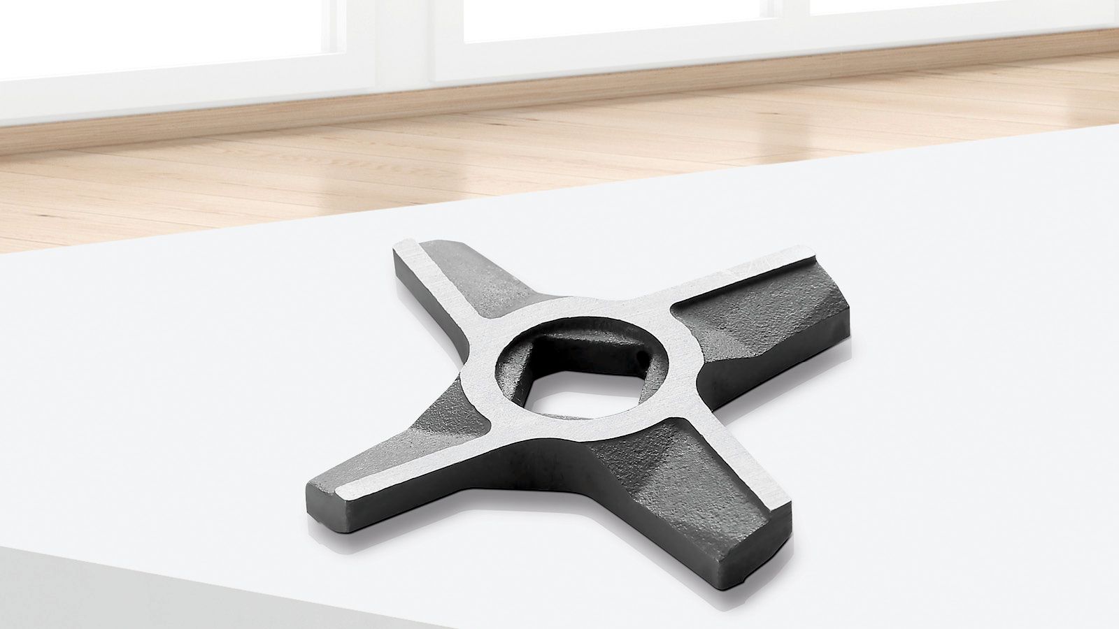 Običajno imajo aparati za mletje mesa nož z enim rezilom. Dvostranski nož iz nerjavečega jekla ima dve ostri rezili in torej vedno poskrbi za pravilno namestitev in popolnoma natančen rez. Nož se popolnoma prilega ter enakomerno stega meso in zelenjavo. Omogoča tudi enostavno namestitev in čiščenje.