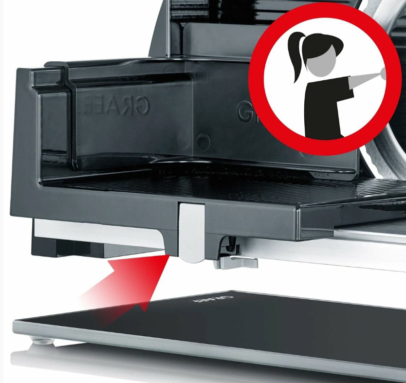 Držalo za ostanke hrane zagotavlja varno rezanje brez odpadkov hrane, varnostna ključavnica za otroke pa ščiti med čiščenjem ali neuporabo.