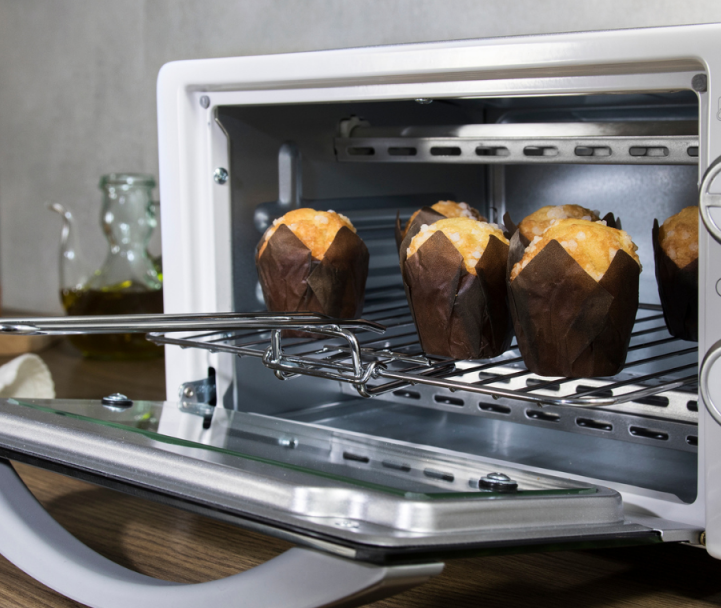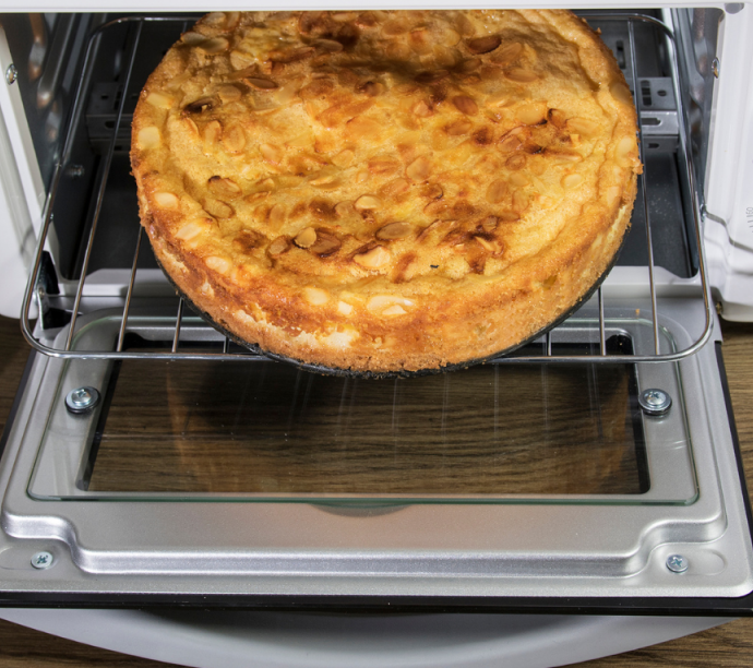 Namizna pečica je opremljena s pekačem, rešetko in ročajem s sponkami za varno odstranjevanje vsega, kar postavite vanjo.