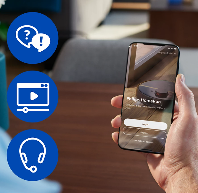 Aplikacija HomeRun je zasnovana tako, da je intuitivna in preprosta za uporabo. Vsebuje navodila po korakih in koristne videoposnetke, ki zagotavljajo, da boste sesalnik kar najbolje izkoristili. Aplikacija komunicira s sesalnikom in ga upravlja, poroča in obvešča o učinkovitosti čiščenja, kjer koli ste, ter v realnem času prikazuje, kje je sesalnik očistil. Določite, kako želite očistiti vsak prostor, sporočite sesalniku, kam ne sme iti, ali načrtujte čiščenje, da vas bodo doma pričakala čista tla.