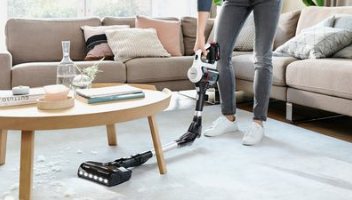 Prihranite čas in energijo zahvaljujoč funkciji Quick Stand. Preprosto in brez napora preklopite sesalnik s čiščenja tal na čiščenje srednje stopnje z ročnim sesalnikom. Pri čiščenju z ročnim aparatom krtača in cev preprosto stojita sama. Sesalnika vam ni treba odlagati na tla ali ga vrniti na priključno postajo. Nato preprosto vstavite ročni sesalnik nazaj v cev in nadaljujete s čiščenjem tal.