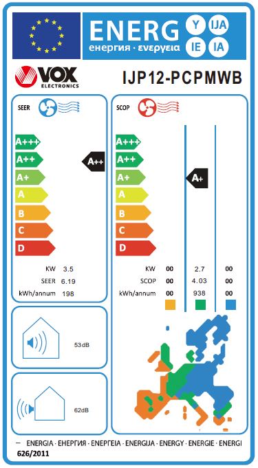 Nazivna moč: 3,5 kW SEER: 6,1 Razred energetske učinkovitosti: A++ |