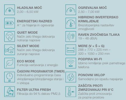 - Zelo visoka energetska učinkovitost – A++ pri ogrevanju in hlajenju