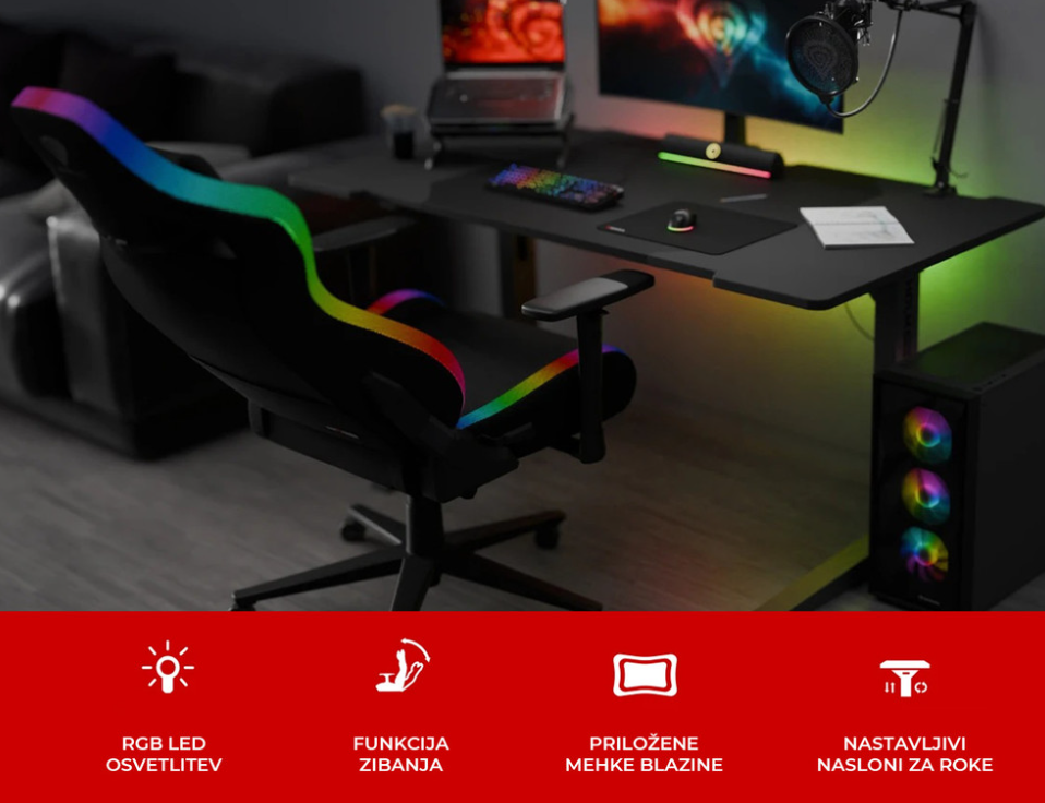 - RGB LED osvetlitev - vgrajene atraktivne LED luči z več različnimi načini svetenja in priloženim daljinskim upravljalnikom.