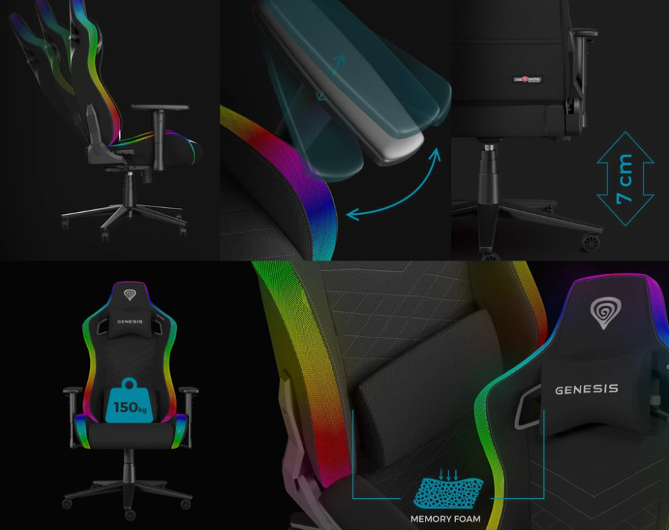 Genesis Trit 660 RGB ponuja več kot 300 različnih načinov osvetlitve, ki jih lahko spreminjate po svojih željah. Želite, da se stol ujema z dodatki na vaši mizi? Z le nekaj kliki se bo zlil z vašo okolico.