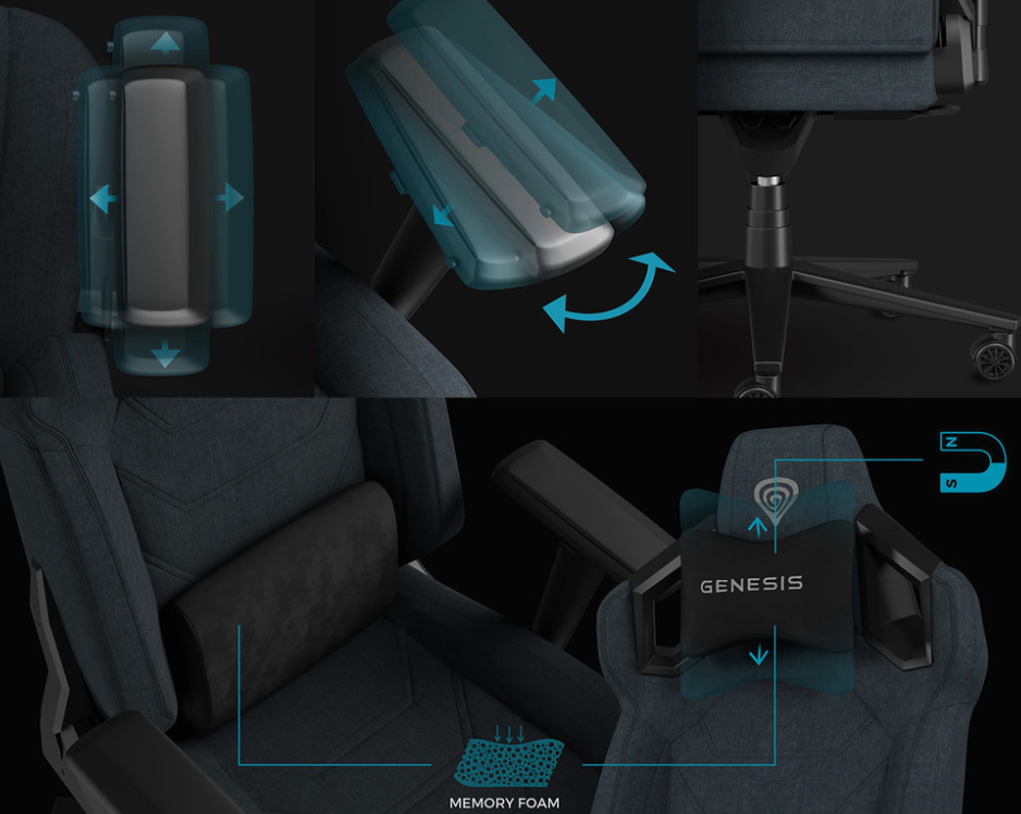 Zavedamo se, da številne ure sedenja pogosto prinesejo še nekaj drugega kot veliko zadovoljstvo – bolečine v hrbtu. Zato je stol Nitro 800 opremljen z dvema udobnima blazinama – vzglavnikom in ledveno blazino, ki ju boste namestili na pravo mesto zase. Izdelani sta iz visokokakovostne spominske pene, zato se prilagodita obliki telesa in zagotavljata odlično oporo vratu in ledvenemu delu. Uporaba magnetnega nastavka omogoča zelo enostavno nastavitev položaja vzglavnika, od bolečin v vratni hrbtenici pa se lahko poslovite.