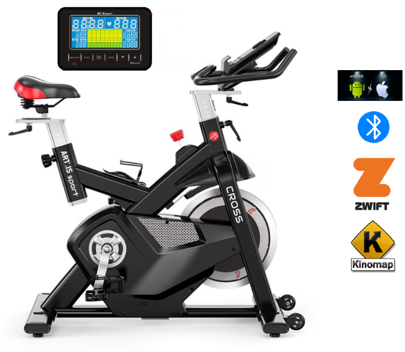 Art.IS Sport Cross AS6 je robustno, tehnično dovršeno in izjemno prilagodljivo sobno kolo, zasnovano za intenzivno domačo vadbo ali polprofesionalno rabo. Z visoko kakovostjo izdelave, magnetnim zavornim sistemom ter naprednimi funkcijami je idealna izbira za vse, ki želijo zanesljivo napravo za izboljšanje vzdržljivosti, kurjenje kalorij in trening srca. Inovativna konzola s povezavo Bluetooth omogoča sledenje vašemu napredku in vadbo v virtualnem svetu (pri povezovanju izberite FTMS).