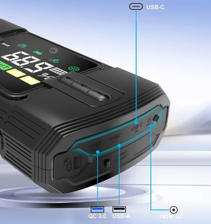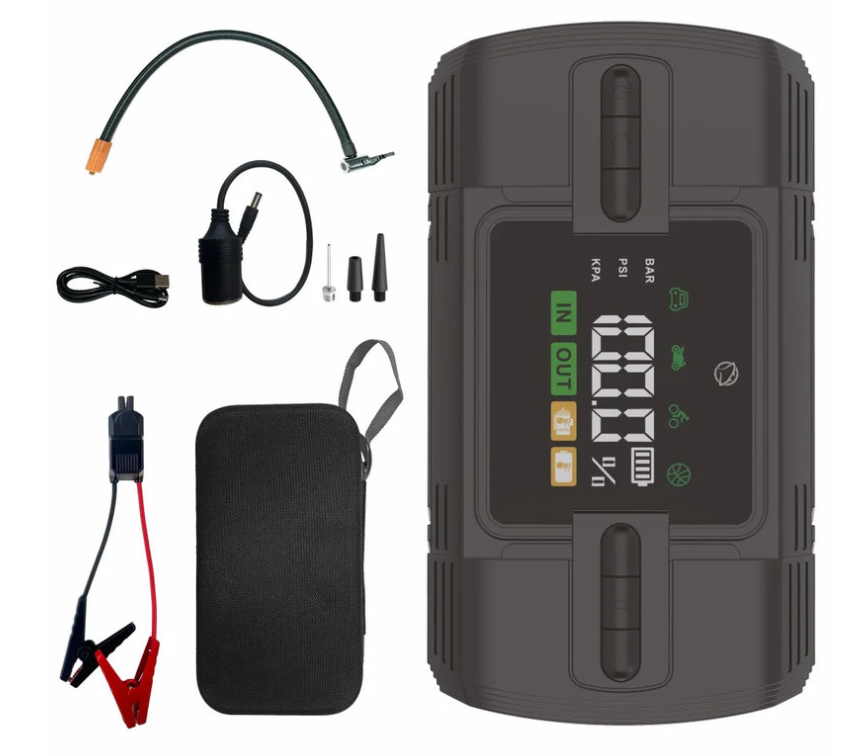 Manta MAJS001AP je inovativen zagonski akumulator s kompresorjem, prenosno baterijo in LED svetilko. Združuje štiri praktične funkcije v eni napravi. Z njim lahko v sili zaženete avto, napolnite pnevmatiko, napolnite telefon ali ponoči osvetlite cesto. Zaradi kompaktne zasnove in vsestranskih zmogljivosti je nepogrešljiv pripomoček za vsakega voznika – tako vsak dan kot na cesti.