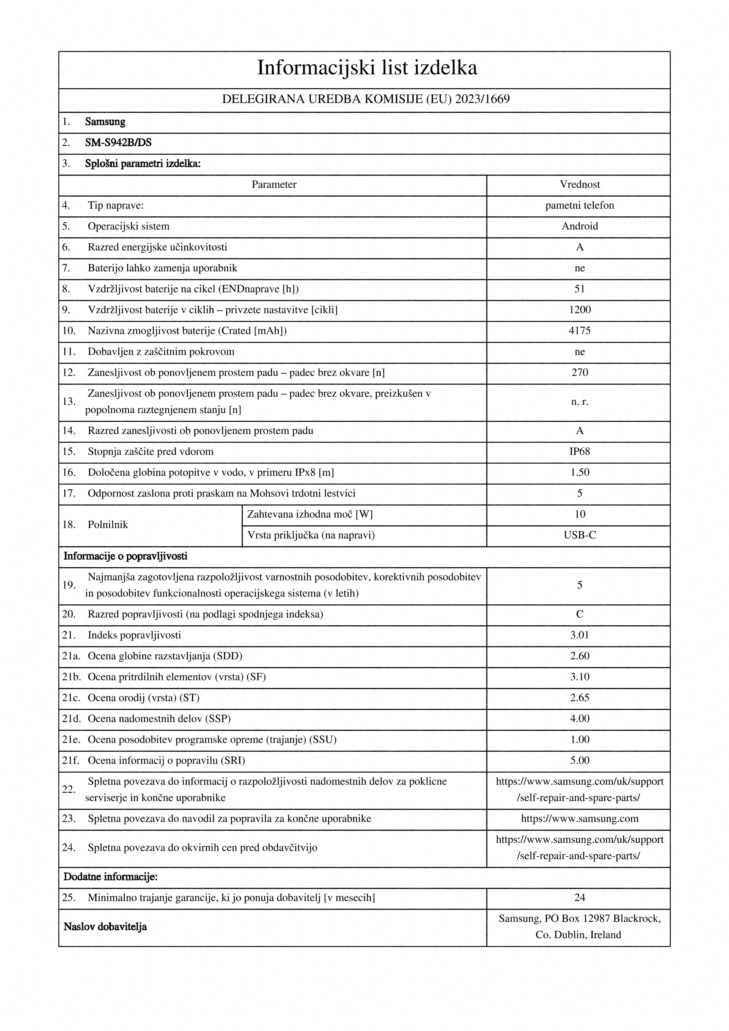 Podatki o proizvajalcu