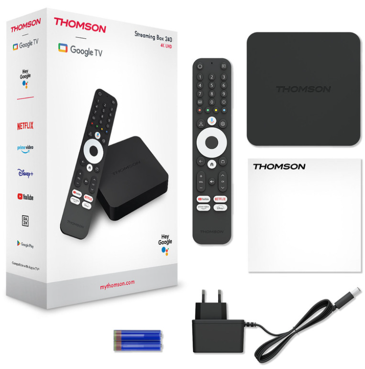 Pametna zabava – poenostavljena! Thomson Box 240 prinaša popolno izkušnjo Google TV na kateri koli televizor s priključkom HDMI. Kompakten, prenosen in enostaven za namestitev - popolna rešitev za pretvorbo katerega koli zaslona v popolnoma povezano medijsko središče – doma ali na poti.