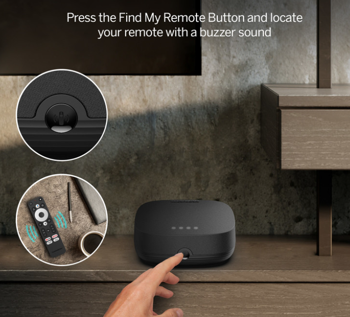 S funkcijo Najdi moj daljinski upravljalnik vam nikoli več ne bo treba skrbeti, da bi ga izgubili. Preprosto pritisnite gumb na glavni napravi in daljinski upravljalnik bo oddal glasen zvočni signal, ki vas bo vodil naravnost do svoje lokacije.