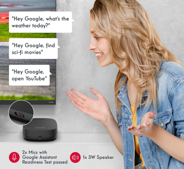 Prostoročno upravljajte televizor z glasom od koder koli v sobi. Uživajte v integraciji s pametnim domom in možnosti brezhibnega predvajanja glasbe ali iskanja filmov. Naprava je opremljena z naprednimi mikrofoni, ki so prestali test Google Assistant ART, zato zagotavlja natančno prepoznavanje vaših ukazov.