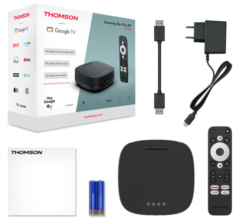 Pametna zabava – poenostavljena! Thomson Box Plus 270 prinaša popolno izkušnjo Google TV na kateri koli televizor s priključkom HDMI. Kompakten, prenosen in enostaven za namestitev - popolna rešitev za pretvorbo katerega koli zaslona v popolnoma povezano medijsko središče – doma ali na poti.