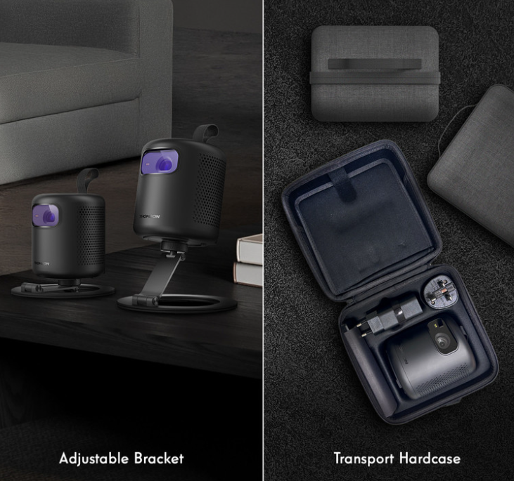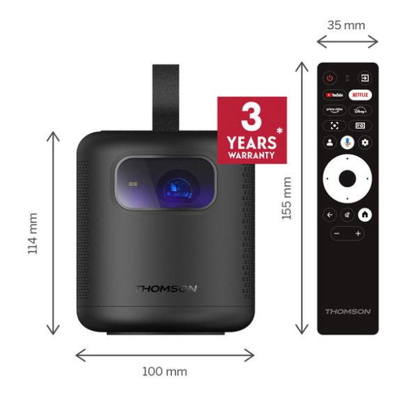 Odkrijte nov način gledanja s prenosnim pametnim projektorjem THOMSON VEGA – kompaktnim in lahkim projektorjem, zasnovanim za uporabo kamor koli greste. Ne glede na to, ali ste prijetno v zaprtih prostorih ali uživate v večeru na prostem na terasi, Vega vsak prostor spremeni v vaš osebni kino.