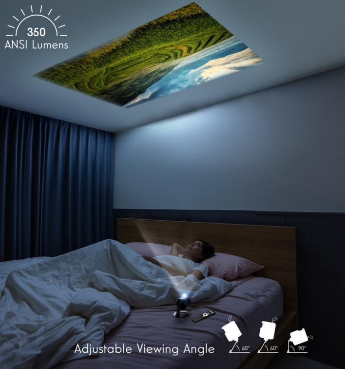 Priložen nastavljivi nosilec vam omogoča enostavno nastavitev popolnega kota in višine projekcije, ne glede na to, ali je nameščen na steni ali stropu, brez uporabe orodja ali dodatnih stojal.