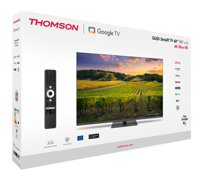 Doživite tekoče slike in visoko odzivnost v bogati kakovosti 4K UHD s Thomson Google TV 43" QLED.