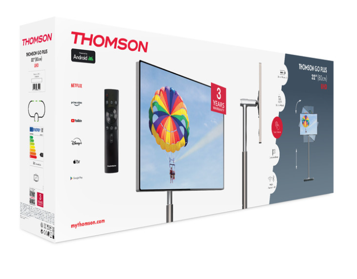 Z našim 32-palčnim HD Thomson Go TV-jem, zasnovanim za enostavno in prilagodljivo gledanje, lahko svojo zabavo odnesete kamor koli želite!